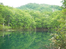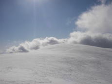 湯峠から尾根を歩き始めるが、冬はブナ林の疎林だった覚えが。ところが今日は密密の潅木で、視界はほとんどない。大渚山本体への登りは尾根を忠実にたどる。雪のあるときは南よりの大斜面を好きに登れるのだが・・・。頂稜にたどり着くが、両側は濃い潅木に展望は全くナシ。真冬なら木が一本もないところなのに・・・。