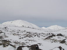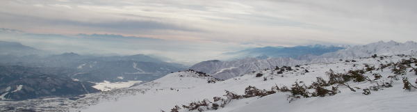 視界は全部あるけど、いかんせん空は鉛色。崩れるという感じではないが、気分の高まりは低い。今日は晴れ予報だったので、景色も楽しむつもりでいたのに・・・。朝一からバックカントリー軍団で賑わっているかと思いきや、ゴンドラを降りても山に行きそうな人はチョボチョボ。う〜ん、なおさら気分は高まらない。