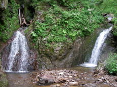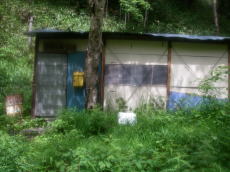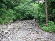 出合小屋で夕方5時。まだ先は長いけど、なんとか暗くなる前には着きそう。あとは林道へ続くと思われるルートをみつけられるかどうか・・・。右岸へ、左岸へ何度も渡渉を繰り返す踏み跡を追っていると、やがて沢から離れて、荒れた林道に出た。これだ!まだ先は長く、身体も疲れていたが、林道なので、何も考えなくても右足と左足を交互に出していれば美しの森に着く。美しの森に着いたのは6時半だった。行きもこの林道を通っていたら、6時までには下山できてただろうなあ・・・。