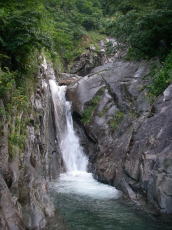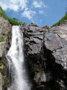 その1の記録(2002年9月) その2の記録(2004年10月) 3回目の米子沢。よい沢は何度来てもよかった・・・というのが結論。あまりにも有名なので、いまさらあーだーこーだ書いても仕方ないけど、少しは書いておかないと・・・。ほとんどが直登可能な滝で、ナメは絶品、ツメは薮こぎなしであっという間。人気の沢である要素をしっかり備えている。はじめの伏流して水のない長いゴーロは減点材料だが、これもウォーミングアップと考えれば、無理やりプラス材料に。あと、こーちゃん曰くの“俗っぽい”というのは否めないところだが・・・。よい沢だから人が集まるってのは当然か。