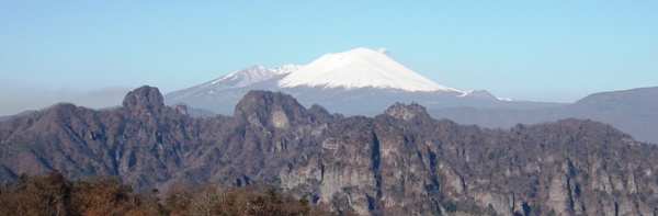 連続する岩場を鎖に頼りながら登ると、一気に視界が開ける。「見晴」だ。読んで字の如く、見晴らし最高の場所。正直言って、妙義でこれだけの展望にありつけるとは思ってもみなかった。筆頭は雪をかぶって真っ白の浅間山。裏妙義の上に聳えているから、なおさら絵になる。あとは谷川岳かな。谷川岳も当然真っ白けで、なじみのない角度からの展望は新鮮。関東平野は逆光でしら〜っとしていた。