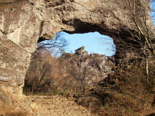 中之岳と西岳のコルで、やっと稜線を離れて下山モード。東屋のある第四石門まではあっという間だった。あとは観光気分で遊歩道を回る。大砲岩だとかゆるぎ岩、胎内くぐり・・・等々の奇岩が散らばっていて、結構おもしろかった。あとは石門をくぐりながら車道に出る。
