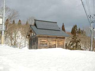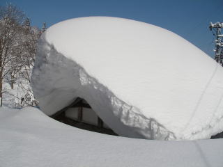 昨年の山之坊集落は、もっこもっこの雪に覆われていたのに、今年は大半の家の屋根が見えていた。ほとんど青色のトタン屋根。除雪終点の壁も壁とは言えないくらい低い。大勢のワカン隊の足跡があった。着いた時は青空が広がっていたが、いつの間にか海側の空には鉛色の雲が広がってきていた。