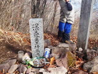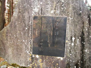 ずっと曇りだったが、時々日が差すようになる。茅ヶ岳の山頂に期待!尾根に出てしばらくで深田久弥が没した場所。奥秩父の山々が望める地で、ここには立派な碑が立っていた。あと10分で山頂というところで、茅ヶ岳未踏で終わってしまったそうです。深田久弥のことは、下の深田記念公園に書いてありました。