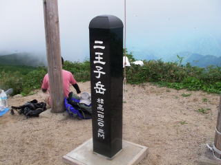 中休止のあと、最後の詰め。沢登りは詰めも重要な要素。詰めの様子や詰め上がったところのロケーションが、これまでの苦労が報われることがよくある。今日の詰めは70点。ヤブ漕ぎ5分で二王寺岳直下の登山道に出た。さらに5分以内で二王寺岳山頂へ。さすがに二百名山、山頂はそこそこのお客さん。トンボはその十倍。トンボといえば秋を思うが、下界は梅雨明け直後の猛暑。さあ、降りるか・・・。