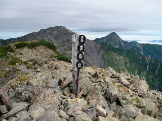 北岳山頂に雲が・・・ 遠くは甲斐駒 |