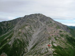 だんだんすれ違う人が少なくなってきた。奈良田まで下るには遅い時間になってきたから。白峰三山は南アルプスっぽくないところ。高さが3000mを越えていて木が生えてないからだけど、北アルプスという感じではない。やっぱり山がデカイ。そんなわけで、農鳥小屋から間ノ岳まで400m弱の標高差にゾッとした。