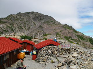 テン場代600円は高いなあ。ビール(350ml)の500円はフツー。水は1L=100円。2L買って200円。1300円使った。これまで2泊は水もビールも背負い、テン場代は当然タダ。水は5Lずつ汲んだので、一日1600円ずつ体で稼いだことになる。1日1600円なら体で稼ぐよりもお金払ったほうがいいな。明日の行程は約8時間。明日の朝はゆっくりできるってとこだが、超大型ヘリが来るので6時半には撤収して下さいとのこと。なんじゃそりゃ・・・。