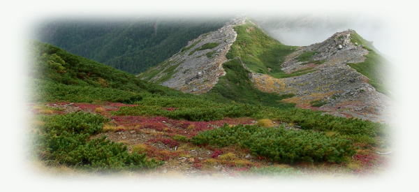 | 小太郎尾根分岐より 草紅葉と二重山稜 |