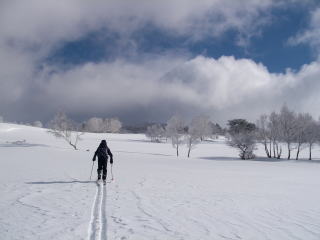 四阿山は滑ることに関してはあまり良い思い出はありません。斜面は南を向いているし、しかも緩い。晴れればイチコロで雪が腐るのであります。なので、「滑りに行く山」の対象にはなりません。ですが、北アルプスにはない広々としたロケーションは四阿山の持ち味(ただ牧場なだけだが・・・)。しょっちゅう行こうとは思わないけど、たま〜に行きたくなる四阿山です。