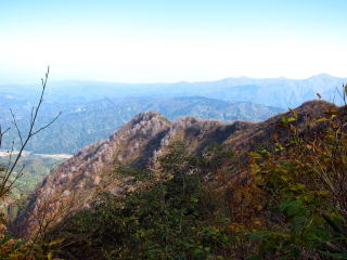 金冠からは急激に下る。最初の岩場はなかなかスリリング。その後は岩場ではなくなるが、スゴイ急坂の連続。ほぼロープが完備されているので大丈夫だが、全面的にロープに頼らないと下れない。まさかとは思うけど、ロープの結び目等をチェックしながら遣った方が安心かもね。