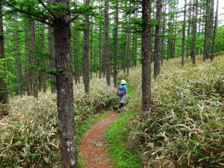 白砂がまぶしかっただけに、樹林帯に突入すると暗いこと。全くと言っていいほど下調べしてなかったのですが、この下山路はかなりの急坂なのですね。道は悪くはないけど、登りの整備具合から比べるとかなり見劣りする。最後の林道歩きも30分以上かかるし、無理に周回にする必要はないのかなと思う。登った道を下るのが楽で早いでしょうね。