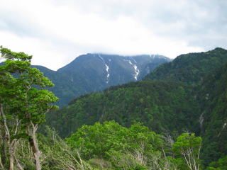 期待の展望は・・・。まったく見えないよりはいいけど、八ヶ岳の稜線、甲斐駒の八合目よりも上が雲。甲斐駒の手前にある鞍掛山や大岩山は見えていた。黄蓮谷は右俣も左俣もまだ雪がビッシリと付いている。北向きだでね。今年は多いのか少ないのかはよくわからない。