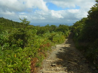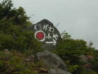 やっぱりゴンドラ利用が多いんでしょうか・・・。ここから道が良くなった。周囲の木の丈は低いが密生しており、展望は効かない。ガスガスってのもありますが。つまらないなあ・・・と思いながら歩いていた。まあ、天気が悪くても安達太良山の山頂は踏んでおきたいところ。この先スキーやら沢登りやらで来たとしても、安達太良山の山頂は気にしなくてもよくなるのでね。