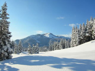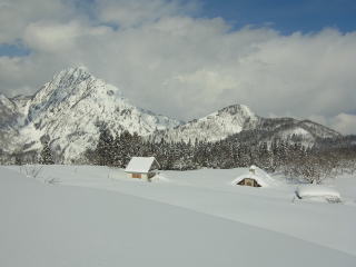で、今週。先週よりは予報は良さそうだったけど、新潟県は微妙なニュアンスの予報分。晴れが堅いエリアも考えたけど、晴れそうな気がしたので日本海側の赤禿山へ。安曇野は抜けるような青空で、気温は−12℃くらい。ちなみに菅平は−29.2℃で観測史上最低だったそうな。白馬あたりでは微妙な空になったけど、山之坊に近づくにつれて快晴に。先週と同じことにならなくてよかった。