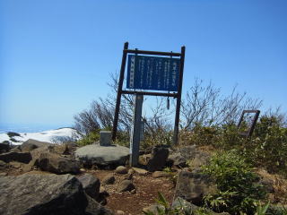 登るにつれて後ろの守門岳が立派になってきます。街から見ると浅草岳と守門岳は離れて見えるのですが、こう見るとお隣の山といった感じです。左には真っ白な飯豊連峰、右には越後三山と馴染みのない奥只見の山々。山を調べるために持ってきていた登山地図、車に置いてきてしまいました。残念・・・。