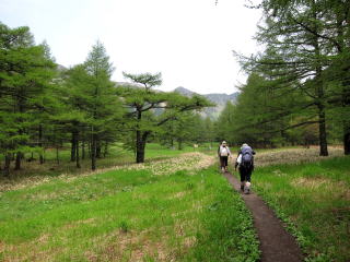 火山館から先はカラマツ林に |