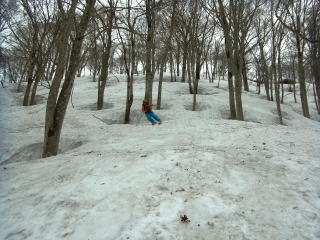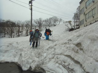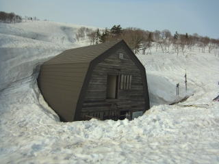 蕎麦のあとは姥沢までの長いドライブ。さすがにこの時間になると姥沢の駐車場もガラガラですね。翌日、温泉で新聞を読んでると、月山スキー場への車道が雪崩で通行止めになり、姥沢が一時孤立したそうな。ウチらが去ってほんの1〜2時間後の出来事だったようです。食らわなくてよかった・・・。