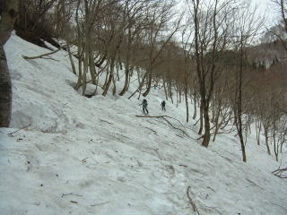 | 意外と快適な斜面でした | 立谷沢川へと下る斜面 |