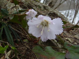 | 大森山基部の登山道 | 登山道にはイワウチワが咲いてました |