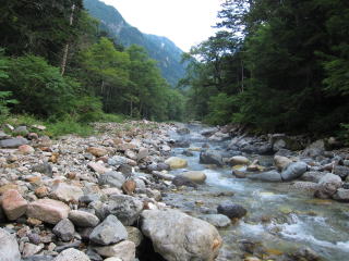 天上沢に降り立ったところを今日のお宿とした。前回と河原の形状が変わってる気が。前回の方が快適だった気がする。マキも少ないし。だいぶここで泊まってるな。まあ、盛大な焚火にするんでなければ、その程度のマキは確保できる。単独の男の人が貧乏沢から下ってきて、天上沢を上流へと向かって行った。酒飲んでメシ食って酒飲んで明日に備えて寝た、