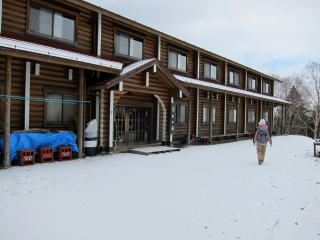 雪景色でウンザリ感は減ったけど、この登り返しと距離の長さにはやっぱりウンザリ・・・。霧藻ヶ峰まで戻ってきて、やっと大きな登り返しは終了となります。あとは距離との戦いを残すのみ。朝は閉まっていた売店が開いていました。中から管理人さんが出てきて、中で休むように促されます。15分ほど管理人さんとお話しさせてもらいました。