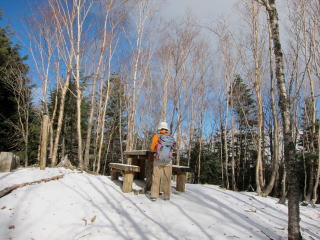 思いやられる下山だったけど、思いがけない雪化粧でウンザリモードが解消されました。周りが白くなると気分もリセットされますね。降ったのはせいぜい2センチくらいなんですけどね。地面や樹林はともかく、小屋、道標、ベンチ・・・等々に雪が乗っかると、それだけで雰囲気がガラリと変わってくれます。行きはガスガスだった白岩小屋ですが、下山時にはすっかり晴れ渡り、和名倉山や両神山、そして多分甲武信ヶ岳&三宝山、金峰山&小川山などが特定できました。