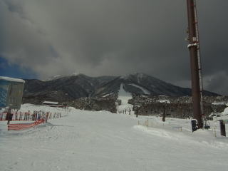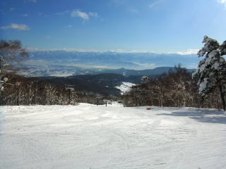 ま、行きは高速。時間が読めるから高速にしたのに、長野市内の通勤ラッシュにあってしまった。下道で行ったほうが早かったと思われます。まあ、行程の短い山だからいいんですけど。せっかく1日券なので、霊仙寺山に登る前に何本か滑ることに。このあたりは雪が多いエリアではないので、非圧雪コースと言っても圧雪してないだけの話で、パウダーを楽しめることは少なそう。お天気のほうですが、どうも霊仙寺山と飯縄山にだけ雲があるよう。志賀高原の山々は雲ひとつないし、1日雪予報の野沢温泉スキー場も見えている。晴天率が高いから霊仙寺山にしたのに、逆じゃねーか・・・と思いながらゲレンデを滑っていた。