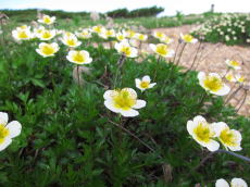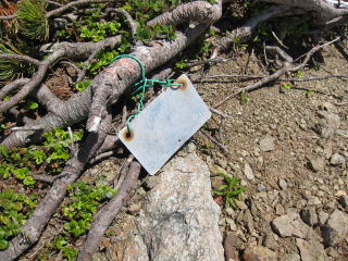 旭岳への踏み跡は下ほど薄いが、登るにつれてハッキリしてくる。前回も登ったけど、今回も一番高い岩峰に攀じ登っておく。この岩峰のてっぺんに旭岳山頂の看板が置いてあるってのも面白い。旭岳山頂からは見慣れない形の白馬岳あ見える。あと、この2日間で清水岳とここ旭岳でしか見なかったアズマギクも。ついでにコマクサも。下りは南西に派生する尾根に踏み跡があったので追ってみた。最後に不明瞭になるものの、わりとハッキリしていた。