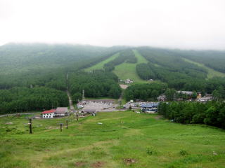 山頂は相変わらず展望なしで風ビュービュー。予定ではここから北上して角間山でしたが、これではわざわざ行く価値ナシ。地蔵峠にまっすぐ下ります。一段下ったら平らになり、牧場になっていました。同時に観光客が目立つようになります。このあたりは登山の領域ではないですね。地蔵峠への急坂にはリフトも営業してました。最後はゲレンデを下っておしまいです。