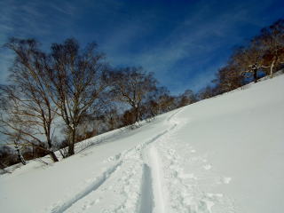 今年も三田原山からのスタートとなりました。ここんとこ何年かは山スキーデビューの仲間用に組んでいた三田原山。初心者を含む大人数で登りも下りものんびりだったのが、今日は初心者のいない3人。登りも下りも呆気なく終わってしまった・・・。まあ、これが普通なんでしょうけど。あっさり終わり過ぎてリフト代がもったいなく感じるくらいでした。やっぱり三田原山は大人数の時に来た方が価値がありそう。