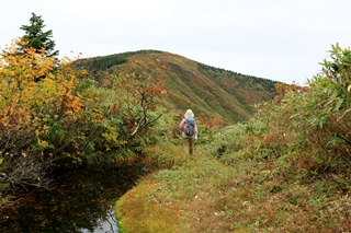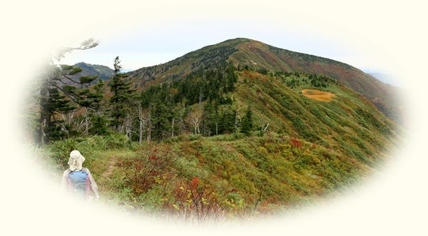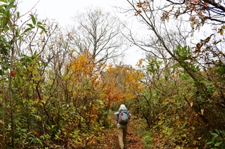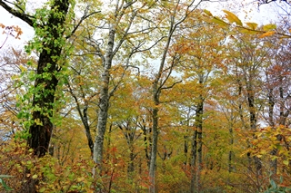 さて、三岩岳といえばブナの紅葉…と勝手に思ってやってきました。旧道と新道が合流してから上がブナ林の雰囲気も良く見どころと言えます。紅葉の時期的にもピッタリだったかな。でも、なんか物足りないなあ〜。この程度のブナ林ならどこにだってあるし。わぁ〜!って感じではない。