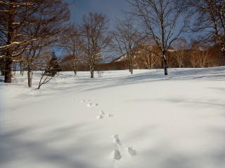 黒姫の山腹を巻く林道の手前で滑るのはオシマイ。このあたりスノーモービルの跡が縦横無尽にありました。大ダルミあたりにもあって、ここらへんあちこり走りまわているようです。どこから入ってきたんでしょうかね〜。どこからでも入れそうな感じはあります。スノーモービルの立ち入りを規制しているエリアとかありますが、このへんは対象ではないんでしょうか・・・?