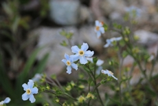 さらに雪渓を詰めるとマヤクボ沢の出合手前くらいで右岸の斜面へ。秋道が左岸から右岸に移るところかな。だいぶ終わりかけではありますが、お花畑の中の道。夏の花から秋の花へと移行するところでしょうか。岩に『レンゲ沢』と書いてある沢で、これからの稜線歩きに備えて水を1リットル追加しておきました。