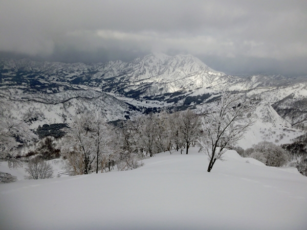 焼山温泉や笹倉温泉をベースとするエリアのウリは何と言っても日本離れした景観。標高300mくらいの里にいながらにして、この景観にありつけるのですから!もちろん素晴らしいのは景観だけではなく、スキー向きの斜面も目白押し。ただ、どっちかと言うと春が旬のルートが多いような…。深雪のシーズンでは放山がメジャーで、あとは最近では新田山に登る人が多いみたい。今日はそれに続く第三のパウダー用の山を探しに出掛けてみました。