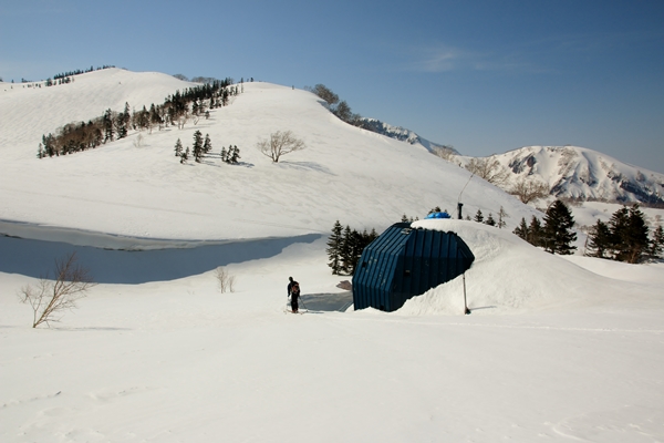 前夜は歓迎会。朝の動きがスローになり若干遅れ気味で事が運びます。妙高のセブンでこーちゃんと落ち合って、車1台で笹ヶ峰方面へ。今回の核心の一つが笹ヶ峰林道の除雪。笹ヶ峰の駐車場までは済んでないにしても、最悪でも池ノ峰を回り込むところまでは…と思いながら車を走らせます。結局のところ涸沢と京大ヒュッテの間くらいまで済んでました。これならロスはほとんどないです。吉田さん情報ありがとうございます!