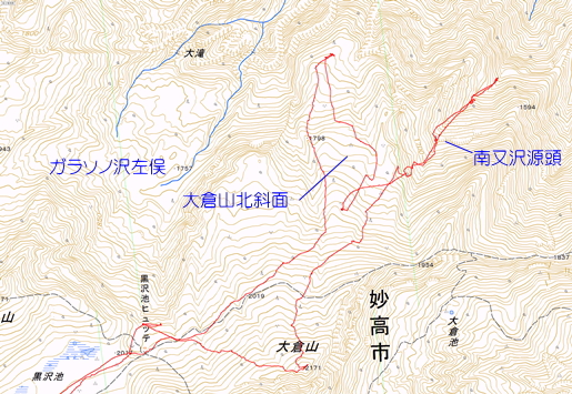 妙高 南又沢源頭&大倉山北斜面 スキー探索