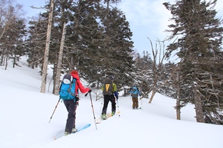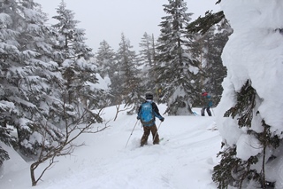 | 昨日はグランデコから西大顛〜南西尾根raccoさんと初共演…というか、お世話になっただけですが。今日は北側の天元台から西吾妻に登る予定でした。でもねぇ〜、予報は悪いです。天元台からだとスキー場のトップで天気悪いと、そこから登るのはかなり辛そう。対してグランデコからだと西大顛までは濃い針葉樹なので、多少荒れようが登れます。…てなわけで、今日もグランデコから登ることになったのでありました。