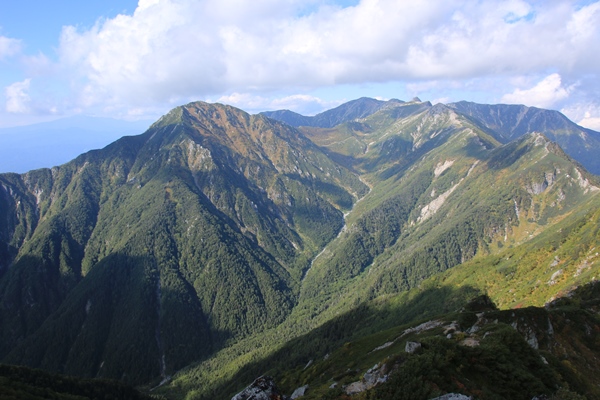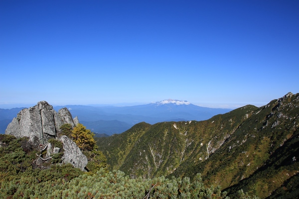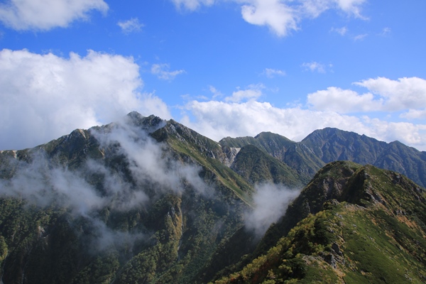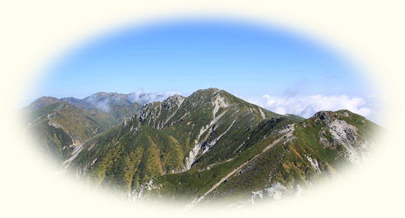 中央アルプス縦走 摺古木山から将棋頭山へ3日目 越百小屋跡から檜尾岳![]() 南駒ケ岳より これから縦走する山々