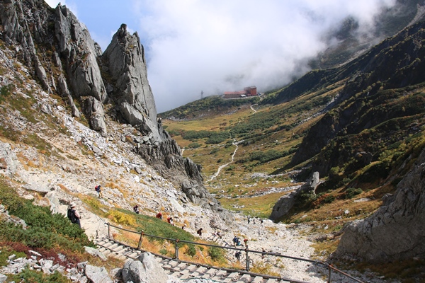 あとは観光地を下るのみ。混んでて時間かかるのを覚悟してましたが、すんなりと千畳敷まで。人はそこそこ歩いてても、道幅が広いのでたやすく抜くことができました。問題はロープウェイ。長蛇の列とか整理券を思い浮かべていたところ、長くなさそうな行列の最後尾に付きます。次の次のロープウェイに乗ることができました。この頃には山全体が雲に覆われるように。なかなかのタイミングでした。駒ケ根高原のバス停に着くとほぼ同時にお迎えも到着。最後はすんなり事が運んでくれました。