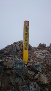 南から湿った気流…ということで、下界は晴れてても山にだけ雲がかかるケースかなあ…。気になるのは明日の天気。明日ももし悪ければ縦走しても仕方ないので下山も視野に…。かといって、下山も相当時間がかかる。唐松に行くのと変わらないかも…?明日が晴れるなら下山はナシだな…。こんな天気なのに杓子岳を巻かずに山頂へ。チョットかと思ったらガッツリ登らされました。巻けばよかった…。頑張って杓子岳に登ったんだから、白馬鑓にも登っておきます。 白馬鑓の山頂で天気予報チェック。下界はまずまずの天気みたいで、明日も降水確率は低いようです。気持ちは下山に傾きかけましたが、なんとかこらえて分岐を天狗山荘方面に。小屋のベンチで少し休ませてもらいます。天狗山荘周辺もいい感じのお花畑が広がっていますね〜。不帰方面に向かう人もいることだし、ボクも向かうとしましょう。