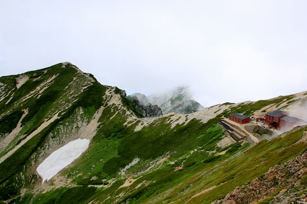 唐松山荘は通過します。信州側はずっとガスの中なんでしょうね〜。ガスガスの八方尾根を登って来た人は、稜線に登り着いて黒部側が晴れててビックリ&感激してました。信州側がガスガスで稜線に出たら西側は晴れていた…は後立山でも常念山脈でもよくある話です。ただ、こればっかりは登ってみないとわかりません。
