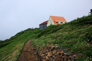 朝日小屋(5:27)⇒朝日岳(6:20〜28)⇒水平道合流(7:10)⇒雪倉岳(9:55〜10:13)⇒雪倉避難小屋(10:35)⇒鉱山道分岐(11:24〜33)⇒三国境(12:15〜22)⇒白馬岳(13:04〜18)⇒白馬テン場(13:46) |