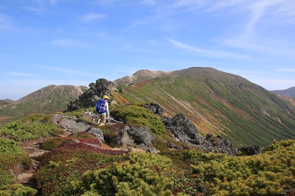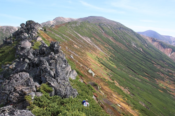 2015年紅葉 北海道シリーズ9日間愛山渓温泉から沼ノ平、当麻岳、安足間岳、永山岳![]() 当麻岳から安足間岳へ