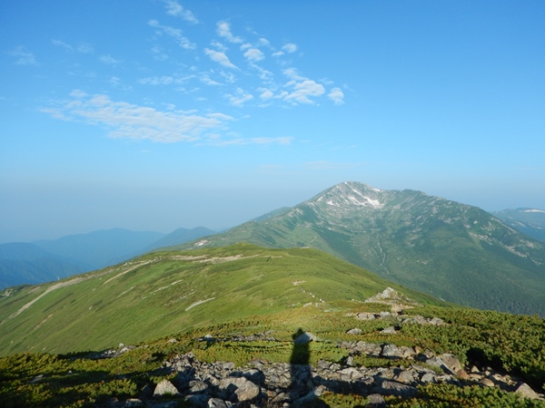 2015年夏 北アルプス縦走 8泊9日5日目 三俣山荘から薬師峠三俣山荘→黒部五郎岳→北ノ俣岳→薬師峠 ![]() 三俣蓮華岳の巻き道