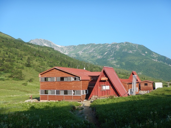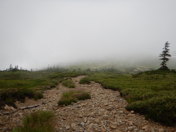 ■太郎平小屋でしゃべって薬師峠へ涼しくて助かるけど、やっぱり晴れてた方がいいなあ。ただ歩いてるだけで…。時々スーッとガスが引くこともあるけど、すぐにまた覆われて真っ白に。北ノ俣岳の下りはハクサンイチゲ畑が名物。だいぶ咲いてたけど、一昨年の方がすごかったなあ…。もう終わってしまったか、まだこれからなのか…?太郎平小屋に着くとみいさん外に出てました! みいさんは10日ほど?だけど、太郎平小屋のお手伝いにきてます。ちょうど上手いこと休憩時間で、1時間ちょっと小屋前のベンチで楽しくお話しさせて頂きました。ついでに腹減ったので太郎ラーメンも。ツルツルっと食べて、ゴクゴクっと汁飲んであっという間に終了。3杯くらいは食べれそうな感じです。