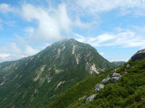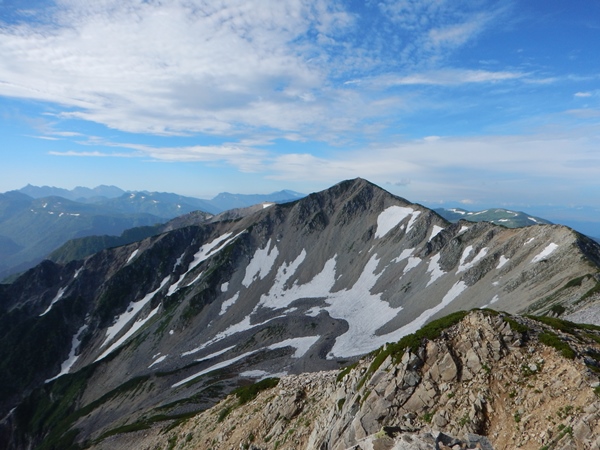 2015年夏 北アルプス縦走 8泊9日6日目 薬師峠から五色ヶ原薬師峠→薬師岳→スゴ乗越→五色ヶ原 ![]() 北薬師岳からの薬師岳