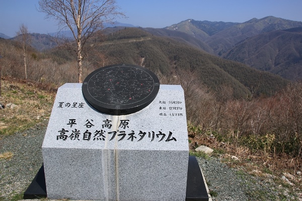 ■高嶺山へとっとと下って次の山、平谷村の高嶺山に向かいます。高嶺山は平谷の道の駅から3時間かけて登るルートがありますけど、楽して車道で上がれるとこまで上がります。かなり長い道のりで高度を上げ、登り着いたところが長者峰とうところ。標高は1574mもあります。ちなみに高嶺山は1599m。標高差は25mのみ。長者峰には広い駐車場とトイレがありました。