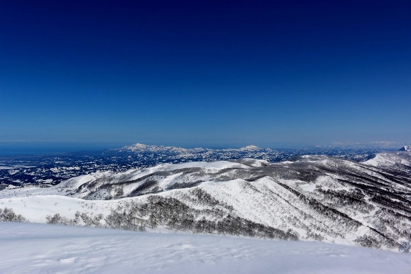 路駐の数からすれば寂しい山頂。もっと賑わってるかと思ってました。結構風が強いので長居はできないですね。一段下で準備してる人たちもいたし。でも、そのわりに最初のハーフパイプのとこは誰も滑ってません。まずは西の沢なのかな。景色は最高です!雲一つなくて、空気も澄んでます。見えるべき山は全部見えてる感じ。ってことは、今日はどこに行っても最高だったってことやね〜。