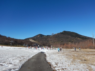 冬に備えてホームページを冬っぽい色に変えたのに、雪が降りません…。白馬のスキー場でさえ、ゴンドラで上がった上しかオープンしてません。とうことは、ダダ混み必至!どうせこんなんなら初めてのスキー場にでも…とアサマ2000に来たのであります。恐らくまともに滑れるコースは1本で、しかも硬いの間違いなし。飽きるし疲れるしで長くは滑れないので、スキーは午前中だけにして、午後は高峰山へハイキングという企てです。 ■朝はアサマ2000でゲレンデスキー小諸から車坂峠に登っていきますが、雪はほとんどありませんね…。この時期に雪がないのは珍しいわけではないと思うけど、この先も降らないといつぞやの年のようなことになってしまう…。アサマ2000のスキー場も天然雪はほとんどナシ。滑走可能なゲレンデのみ作った雪があります。周囲の山肌には雪がないとう異様な光景であります。